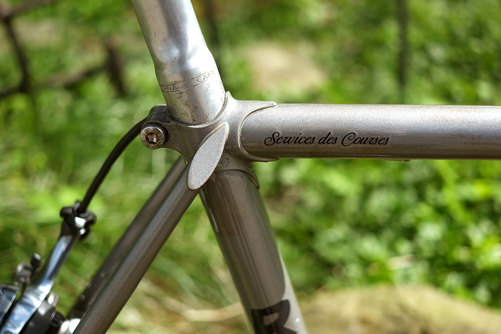 Painted a glossy dark red, together with the headtube it formed one continuous, aggressive slash -standing out from the muted, clear-coated steel tubes of the rest of the frame.